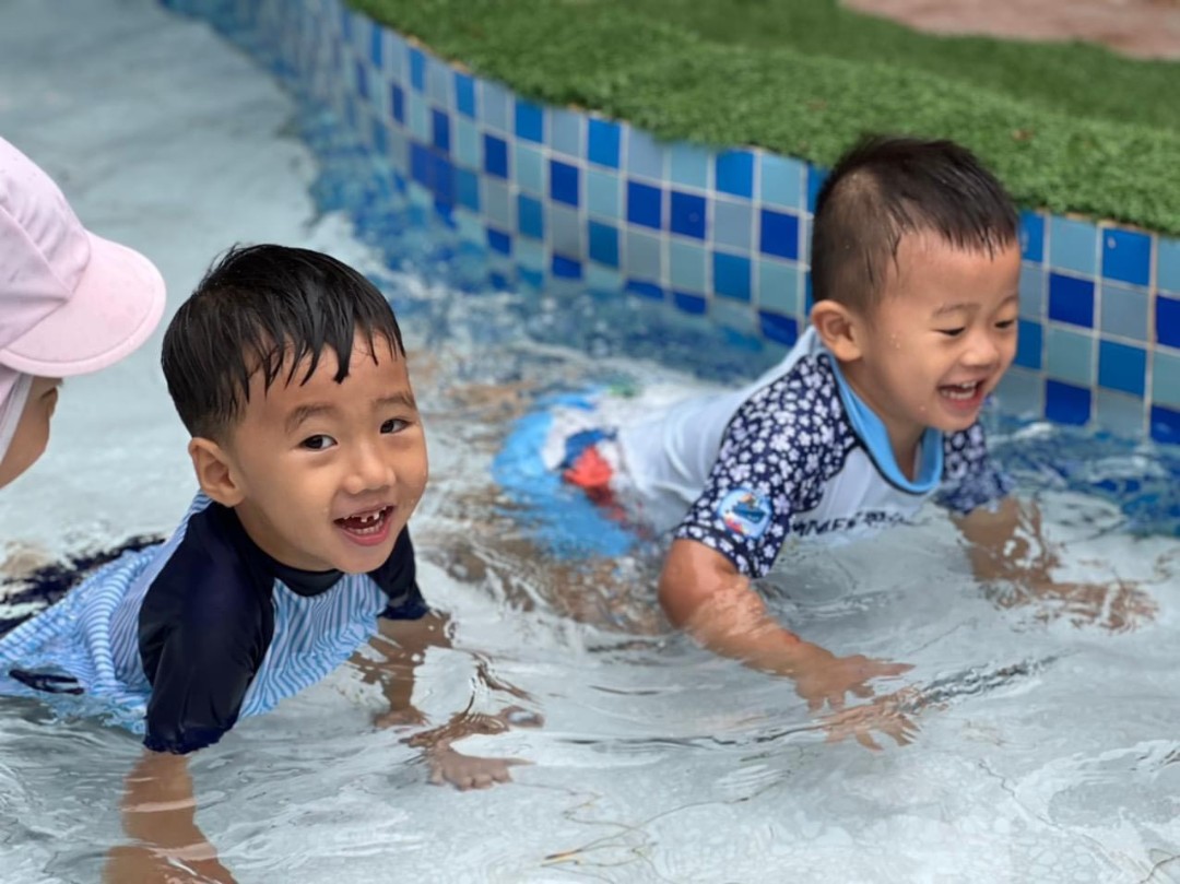 1. Khoảng sân rộng, rất nhiều cây xanh với hồ bơi nước sạch (thay nước ngay khi sử dụng) cho bé môi trường hoạt động nhiều dưỡng khí và không gian hoạt động thể chất vô cùng phong phú.
